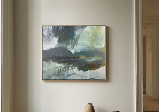Francesca Salvini is a British contemporary landscape painter based in North Yorkshire.She works with acrylic, ink and textured grounds to create abstract landscapes rooted in the hills around Embsay. Her work draws on weather, memory and the shifting light of the Yorkshire Dales.