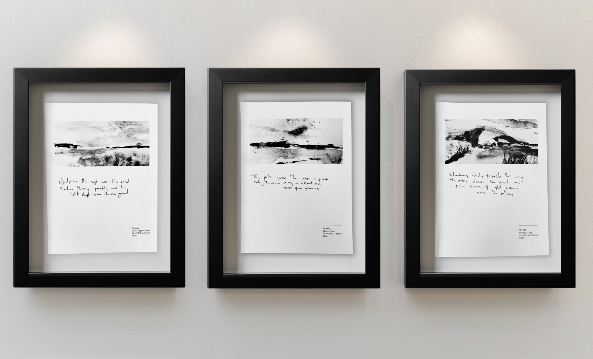 These pieces sit somewhere between a sketch, a print and a painting, fragments of landscape observation captured in a smaller format.