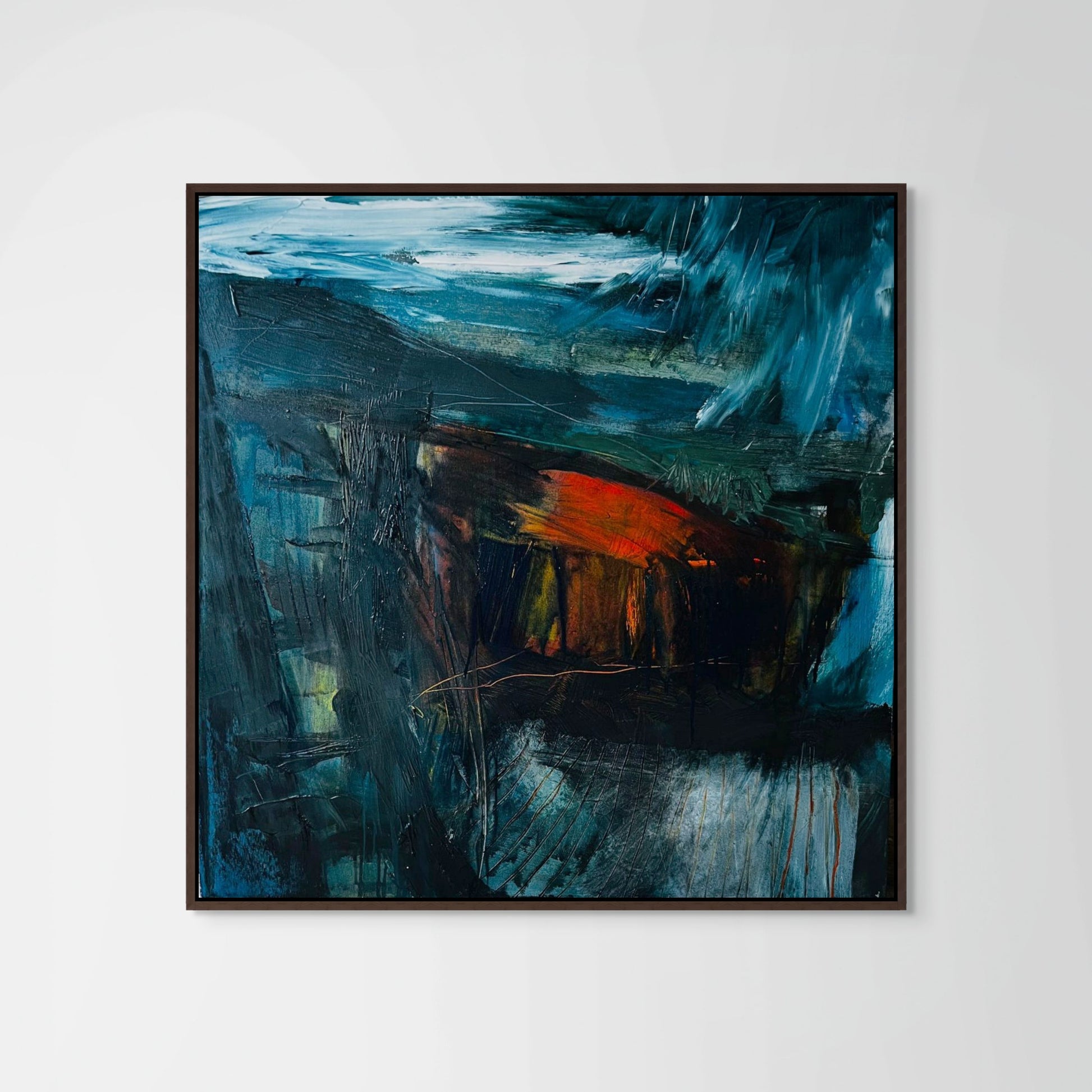 A quiet, moody moment held in paint. This abstract landscape draws on the stillness of the Yorkshire hills just before nightfall - when the land feels heavy and the sky closes in. Dark tones and soft layers evoke that in-between feeling: not day, not night. Just pause.